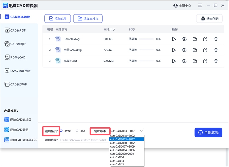 1. Klicken Sie nach dem Öffnen auf CAD-Version-Konvertierung, um Dateien hinzuzufügen.